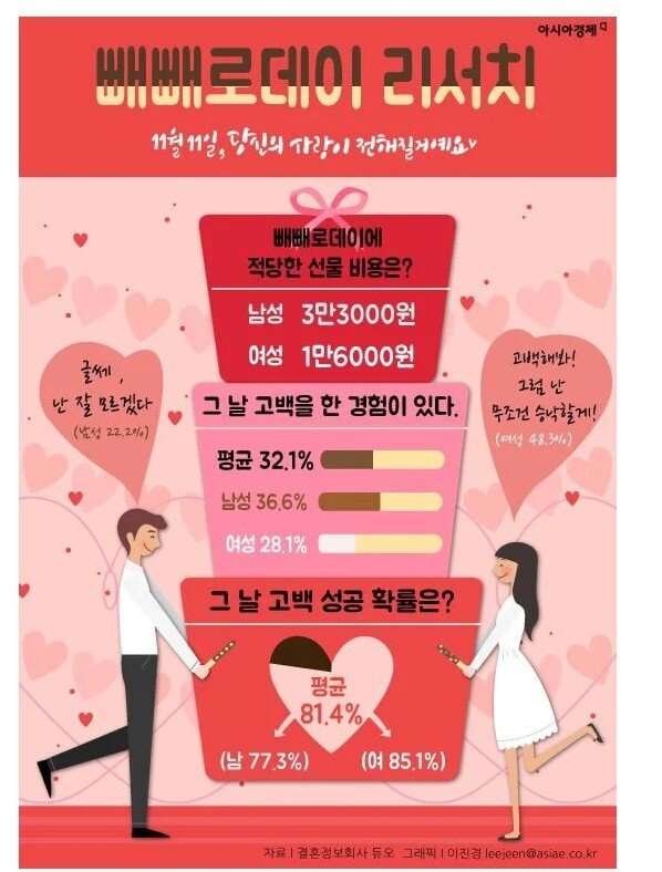 빼빼로데이 고백 성공률 결과...
