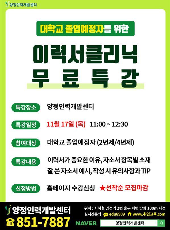 부산에 이력서 자소서 특강 무료로 한데요