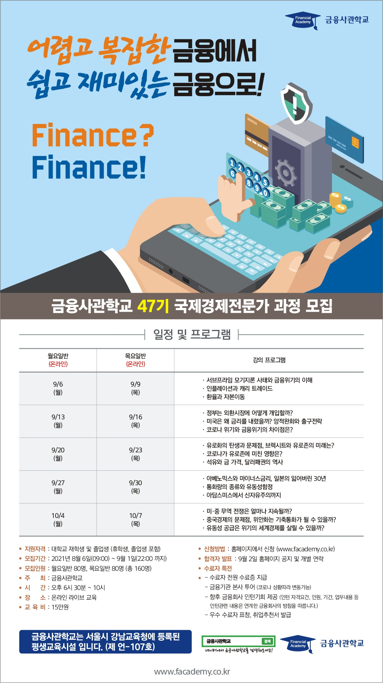 이번 해 7월에 46기를 수료하고 좋은 프로그램이라 공유하고 싶어서 글 올립니다~!!우선 ‘금융사관학교’는 강남 교...