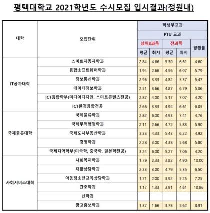 평택대 간호 넣으려는데 ptu 교과 전형이 평균 1점대가 나오는데 전체 평균으로는 다 4등급대더라구요? 1등급으로 ...