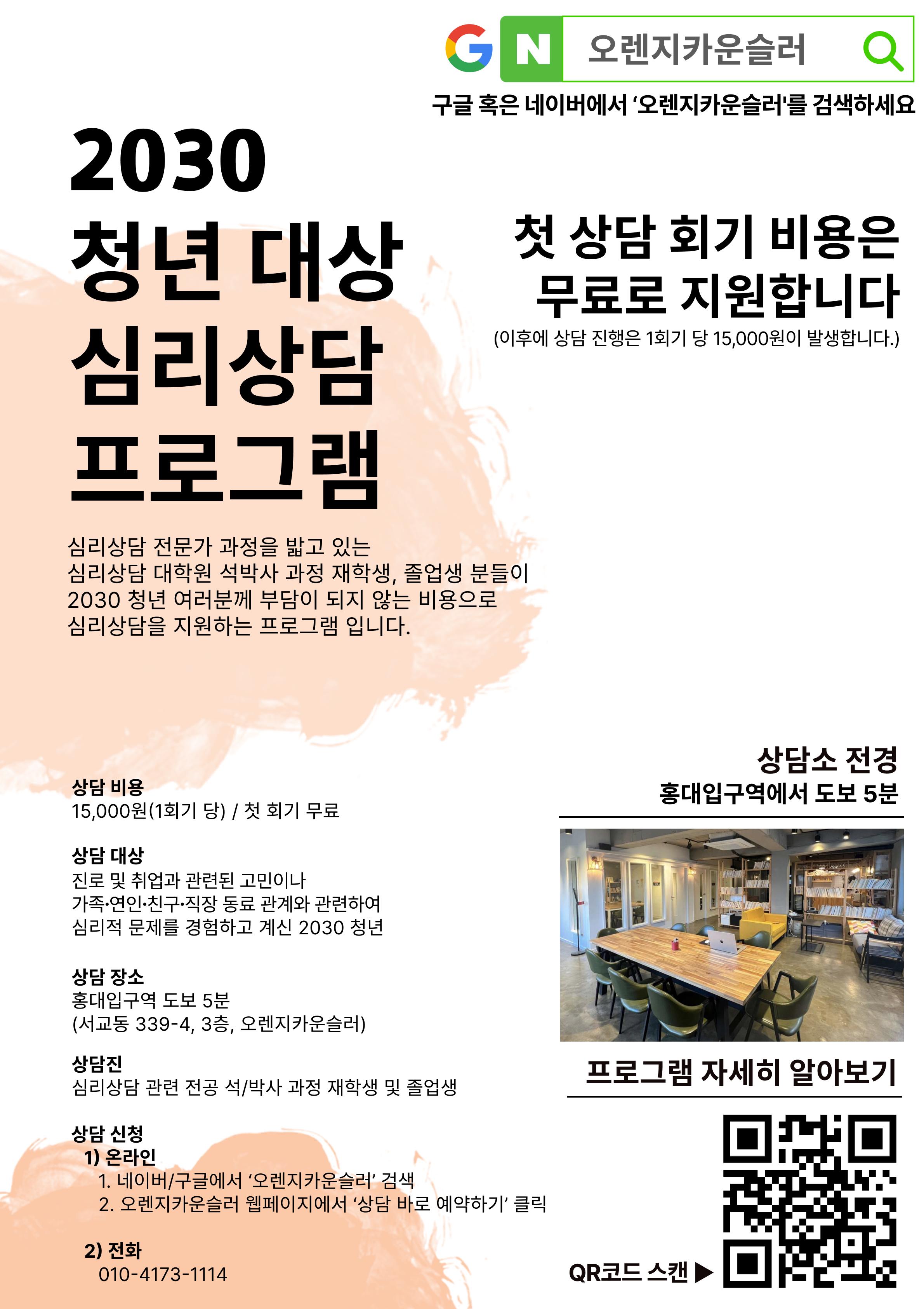 홍대입구 청년 심리상담 프로그램 안내