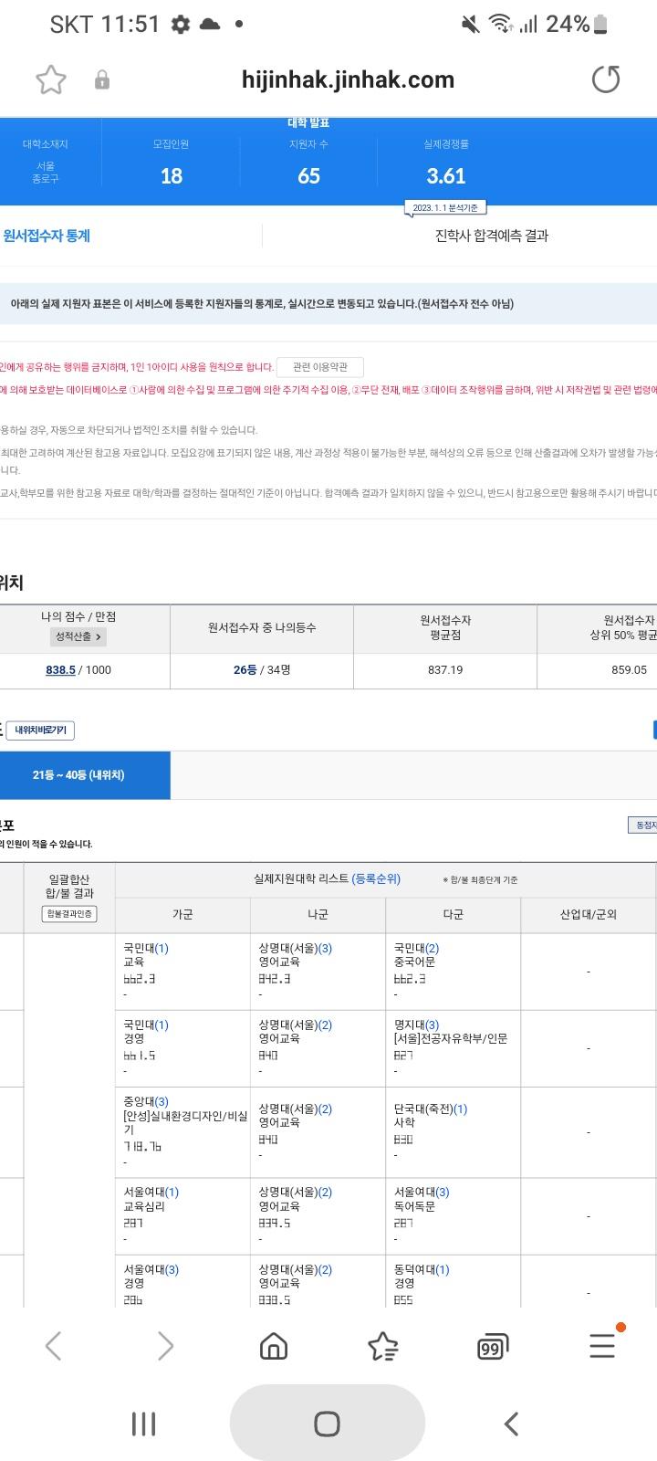 상명대 영어교육과 넣었는데 올해 다에서 나로 바뀌었어요